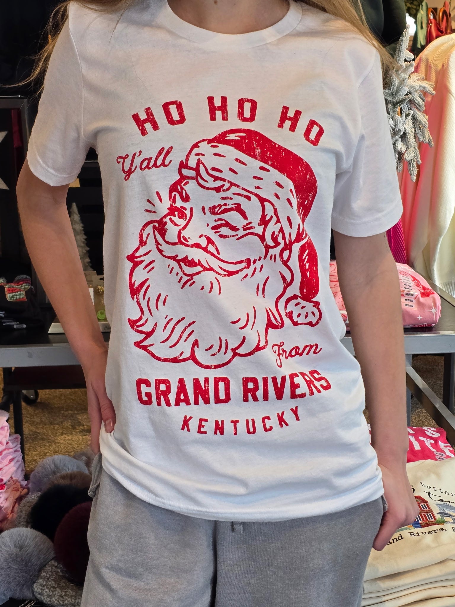 Wear your holiday spirit with this playful vintage tee on Bella Canvas brand featuring Santa's iconic ho-ho-ho greeting straight from Grand Rivers, Kentucky! Soft, comfortable, and bursting with retro Christmas charm, it's the perfect way to spread festive joy. Whether you're lounging at home, heading to a holiday party, or just celebrating the season in style, this tee delivers laughs and nostalgia in equal measure. A quirky wardrobe essential for anyone who loves classic holiday vibes and vintage flair.