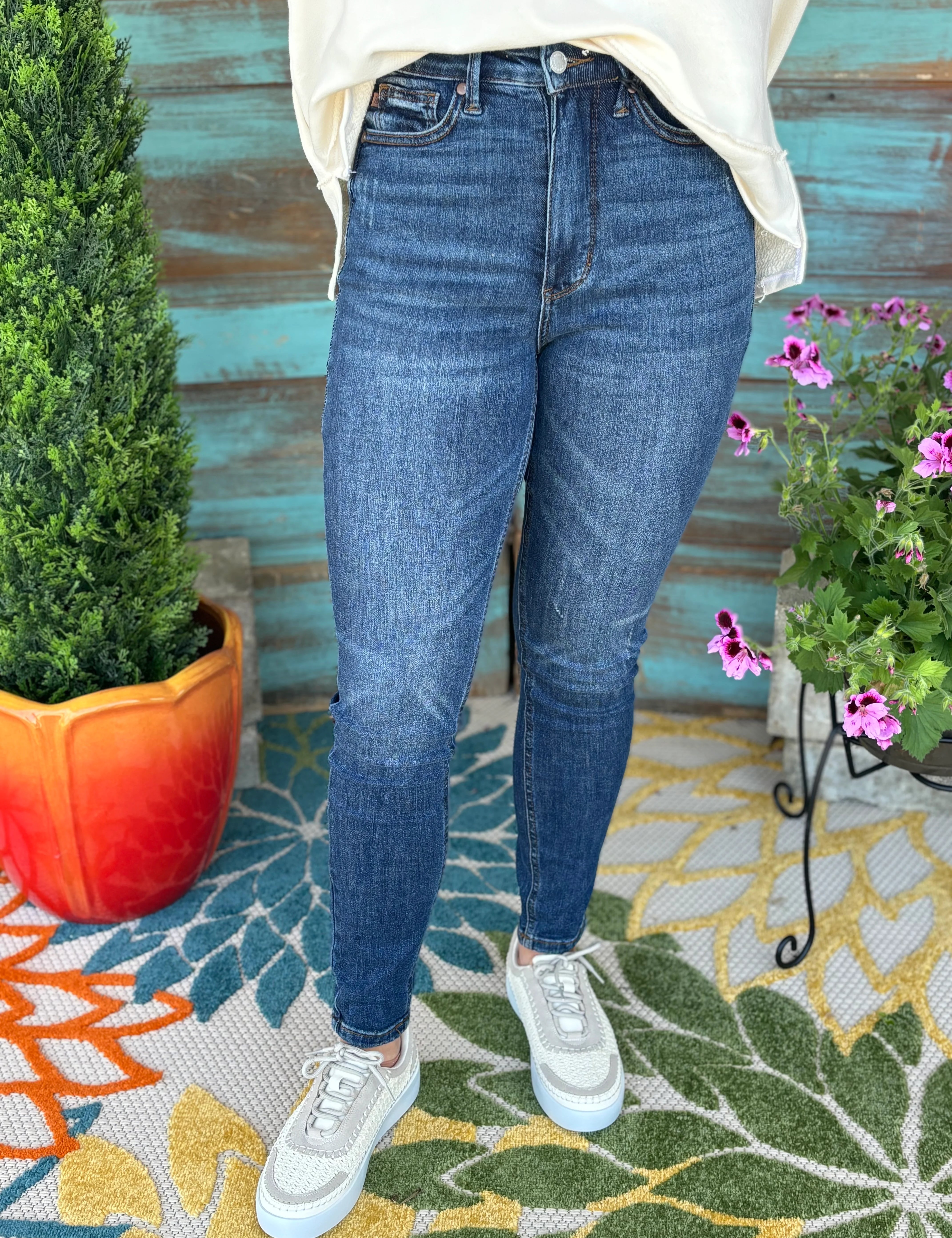 Judy Blue Midrise Classic Crinkle Ankle Skinny