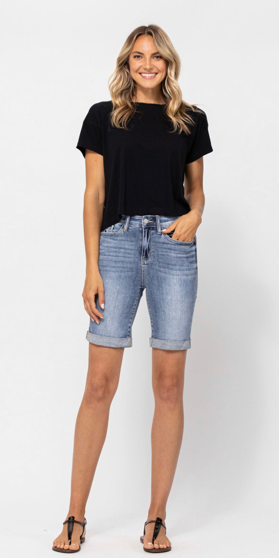 Loving the Bermuda shorts! In Judy Blue hi rise stretchy style!