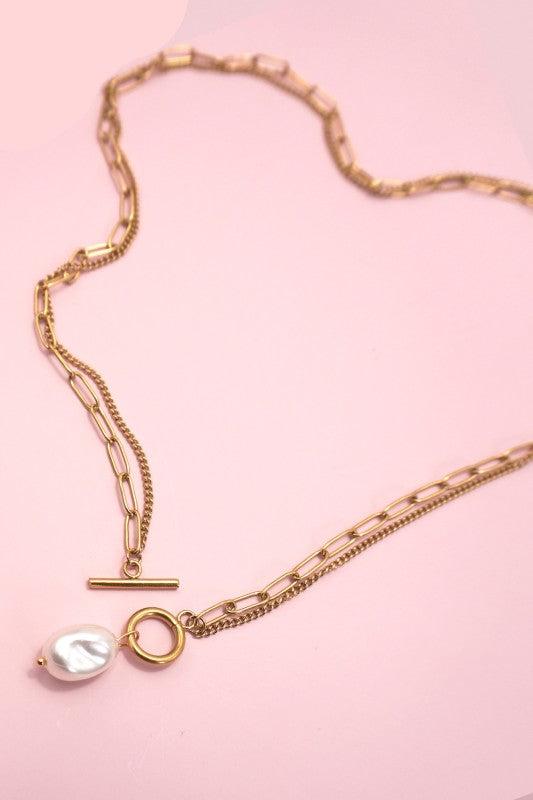 Add a touch of sparkle to your style with this playful 18K gold-finished necklace. Featuring double-layered pearl drop charm, it's designed to shine without the worry of tarnish. At 18 inches long, it’s the perfect length to brighten up any outfit with effortless charm.