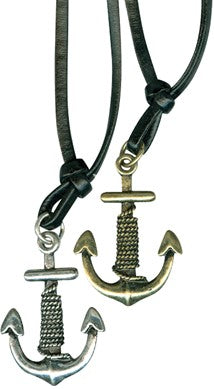 Antique Anchor Pendant On Leather Cord Necklace