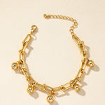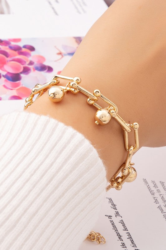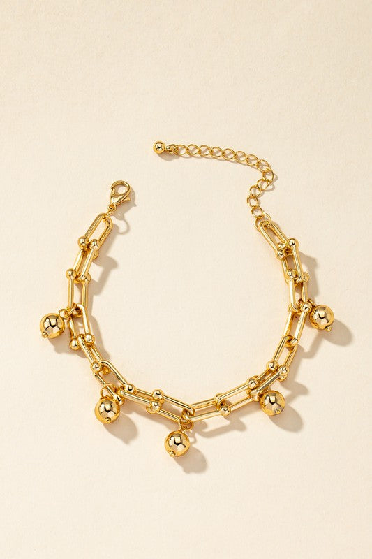 Ball charms circle a chunky chain bracelet. 7.5" with 2" extender.