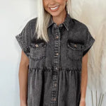 The Becky Looks Good In Black shirt adds a fun spin to your favorite denim. With its short sleeves finished with raw edges, a button-up front, and a convenient flap pocket, this baby doll style top creates a flirty, relaxed fit ideal for laid-back days or layering with flair.