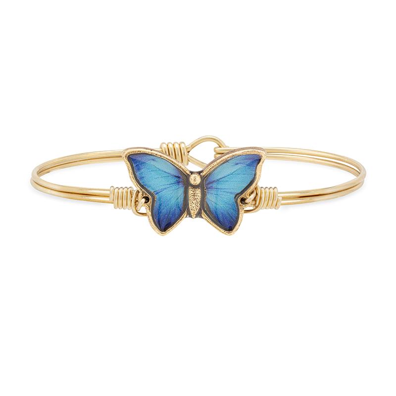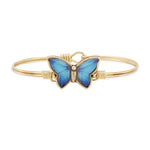 Celebrate beautiful change with this playful blue morpho butterfly bracelet. Its bright, unique pattern is set in a handcrafted open-wing design, symbolizing joy, energy, and transformation.