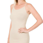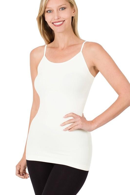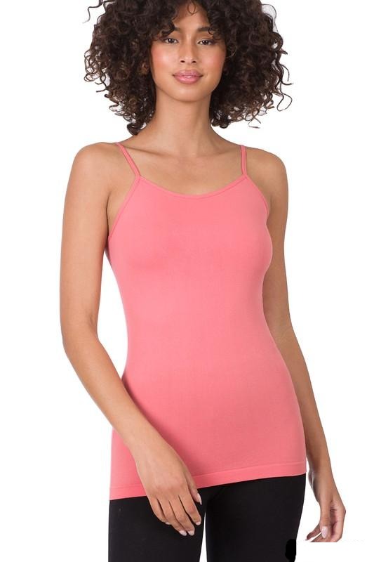 This seamless cami features adjustable straps and an extra-long body, making it ideal for tucking in or layering up. Crafted from a comfy blend of 68% nylon, 25% polyester, and 7% spandex. Colors might look a bit different depending on your screen.