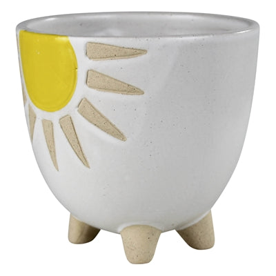 This sunny, radiant cachepot is just right for holding a 4” potted plant, whether the sun is climbing up or settling down.