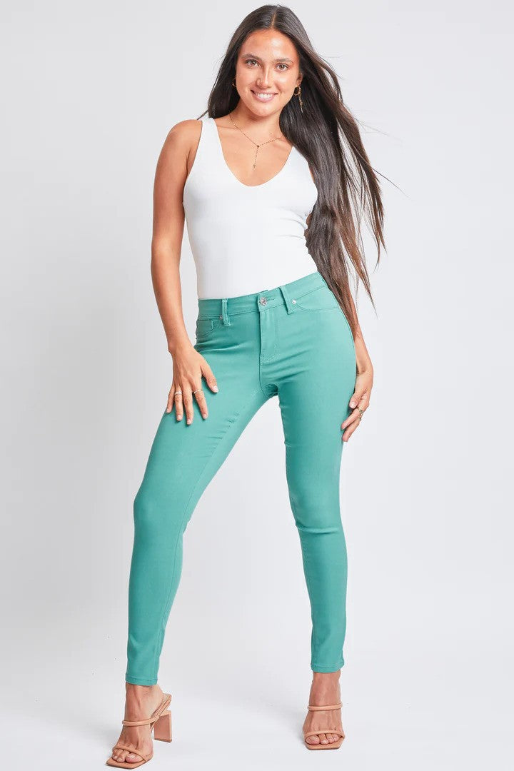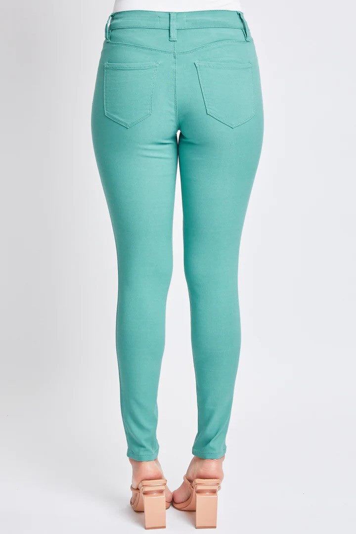 When it comes to skinnies, these take the crown! Crafted from a lightweight, super stretchy fabric, once you try them, you’ll never want to wear any other pair. This solid-colored style keeps it sleek—no distressing—making them perfect for any day or night look. Pair with your favorite patterned tops, chunky sweaters, or cozy layers for endless outfit fun! Featuring a comfy mid-rise fit with plenty of stretch—tip: if you’re tummy-conscious or want a less snug waist, sizing up is the way to go. Sizes run flexible from S to 3XL. Rise (M): 9.75", inseam (M): 29".
