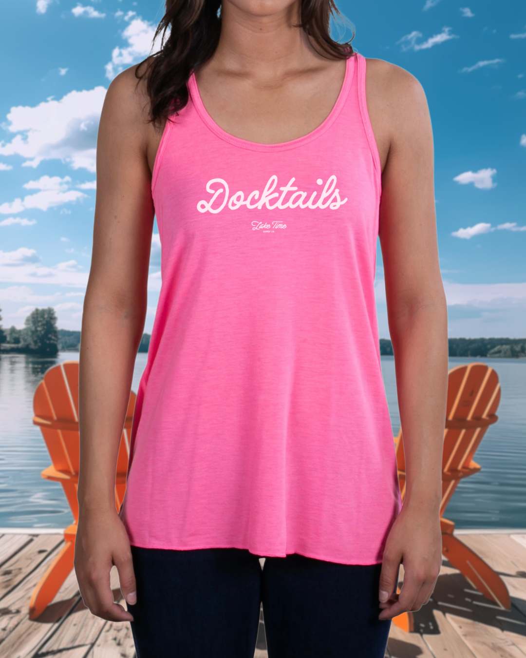 Sip and swirl in style with the Docktails Tank - perfect for lakeside lounging. This racer back flowy tank is ready for Docktails with its playful yet practical design. No need for a straw, just some sunscreen and this tank. Cheers to summer!