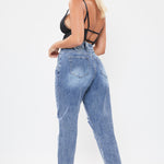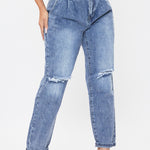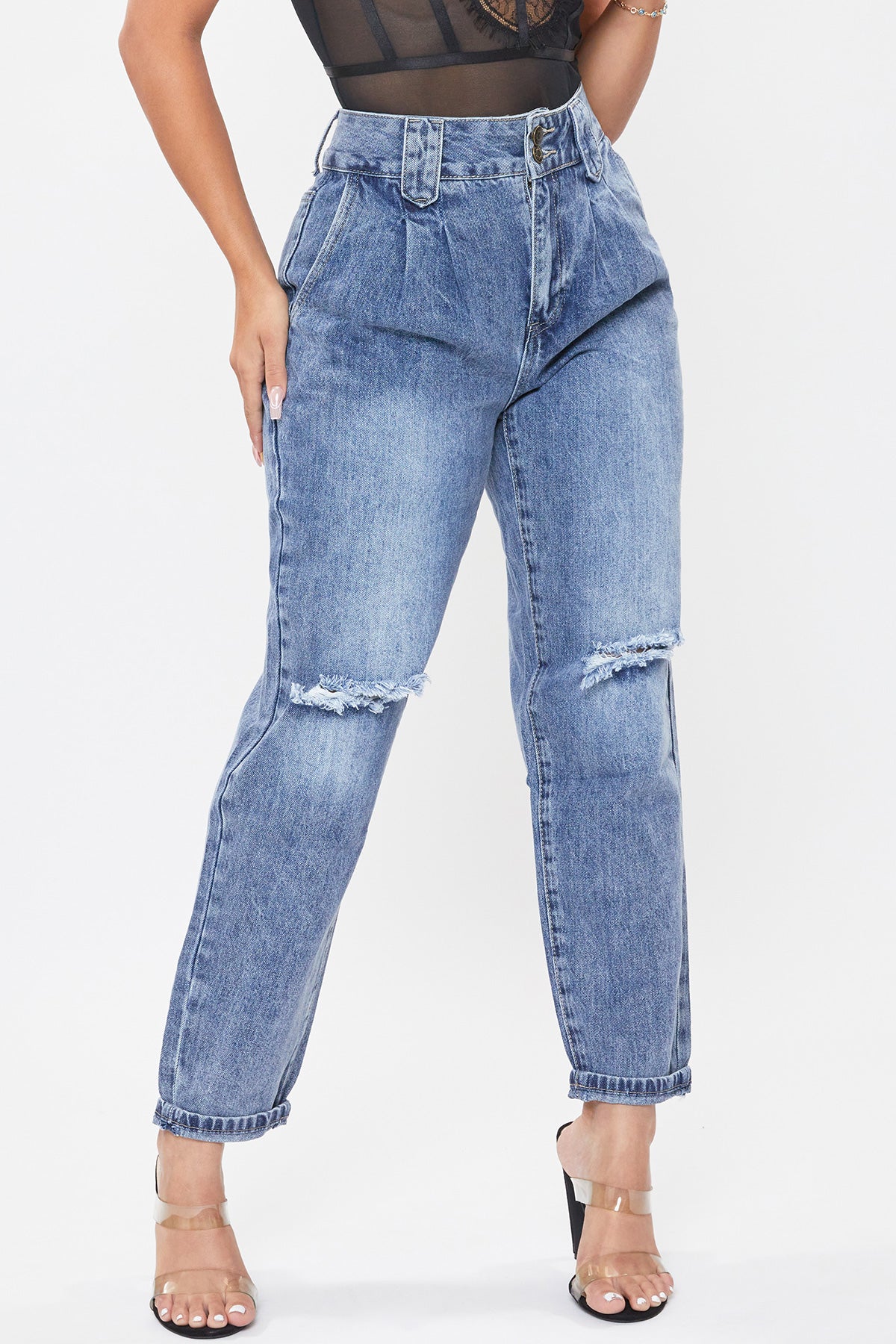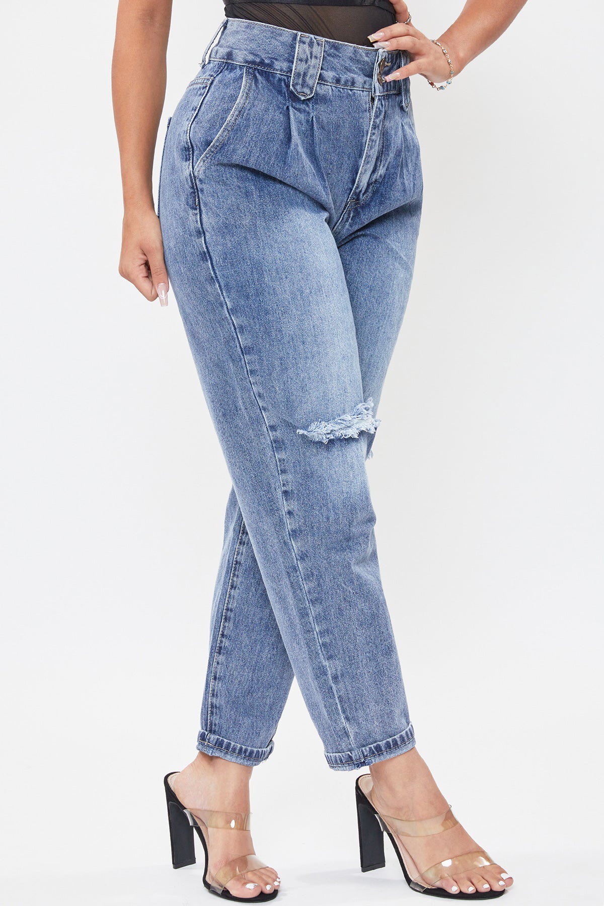 Our Dream Collection is everything you have ever wanted in a pair of jeans. These potassium washed Junior's Dream High-Rise 2 Button Balloon Fit Rolled Cuff Ankle Jeans feature a high-rise fit, 2 pocket construction on front and on back, double button closure with front zip, iconic vintage balloon fit, dart detailing on front, optional rolled cuff at hem, and belt loops.