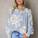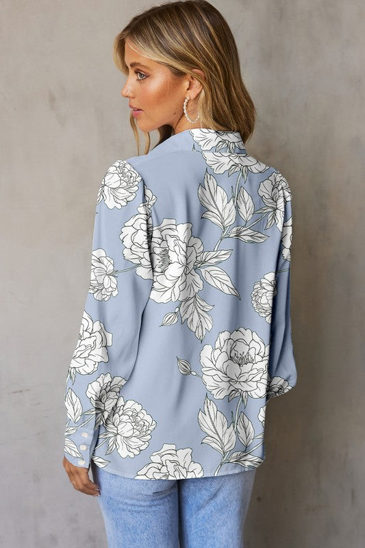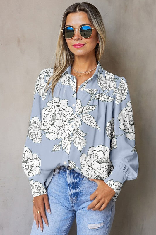 This playful floral long sleeve top features a soft, flowy fabric in a charming blue with white flowers. Its button-down front and classic collar add a touch of casual elegance, while cuffed sleeves bring a fun, relaxed vibe. Perfect for breezy days when you want to feel comfortable and stylish.