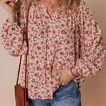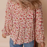 Floral Print Pleated Puff Sleeve Blouse