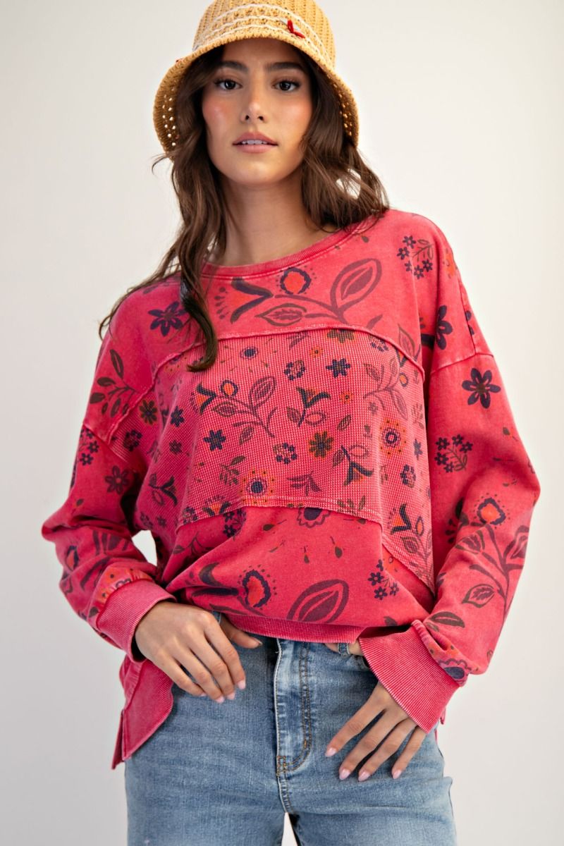 Make this mineral-washed pullover your go-to for effortless style and all-day comfort. The relaxed, oversized cut with dropped shoulders offers a flattering fit that feels as good as it looks, while the lush floral and botanical print brings nature-inspired beauty to your wardrobe. Constructed from pure 100% cotton with a timeless crew neckline, it's the versatile essential that pairs with everything and works for every season.