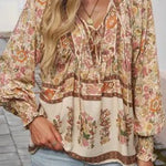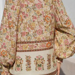 Brighten your wardrobe with this playful yellow floral blouse featuring a charming tie neck and whimsical lantern sleeves. Its lively print and unique details add a fun, breezy touch to any outfit. Perfect for sunny days and cheerful vibes.