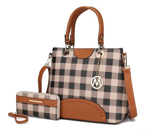 Designed with luxurious gold tone embellishments and removable charm. zip top closure. metal feet to keep purse upright. interior features a spacious compartment with two zippered pockets and slip-in pockets. exterior features back zippered pocket, handle drop 7", removable and adjustable shoulder strap adjusts to 48"
