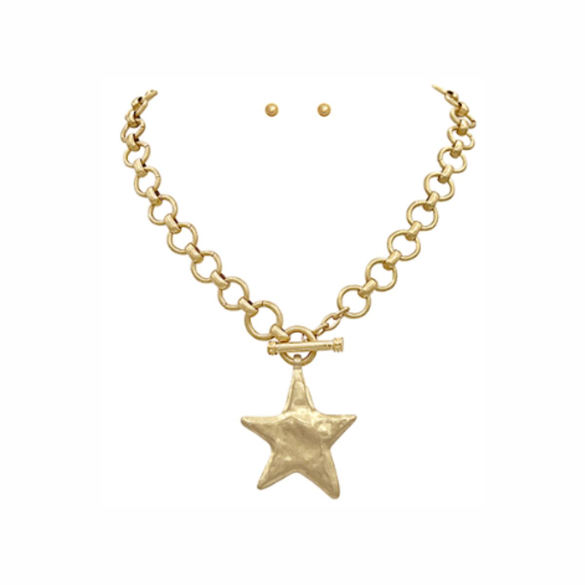 Golden Round Link Star Necklace With Earings