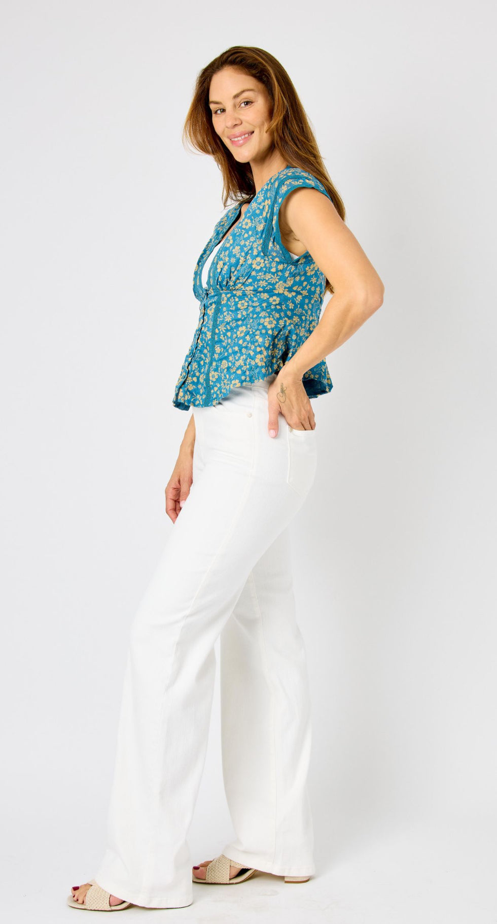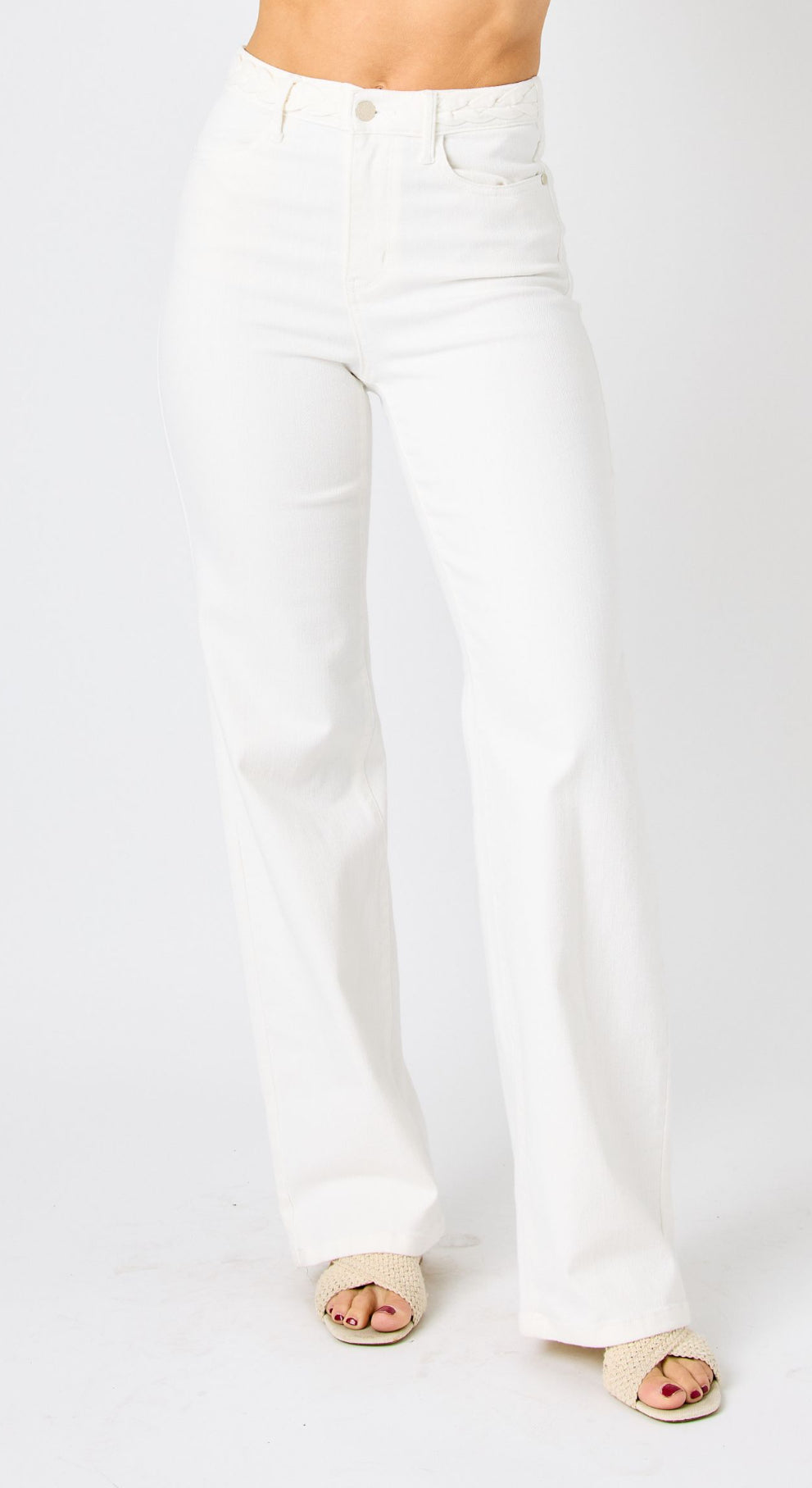 Get ready to make a statement with Judy Blue White Flares, the perfect addition to your spring and summer wardrobe. Featuring the famous stretch jeans from Judy Blue with a unique braided waist detail, these jeans offer both style and comfort. Embrace the season in the coolest way possible with these must-have flares!