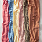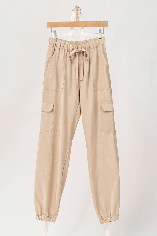 Step into seaside style with these playful drawstring cargo pants made from a breezy blend of 55% linen and 45% viscose. Ideal for strolls along the beach, they pair perfectly with our sleeveless stripe top for a fun, relaxed look!