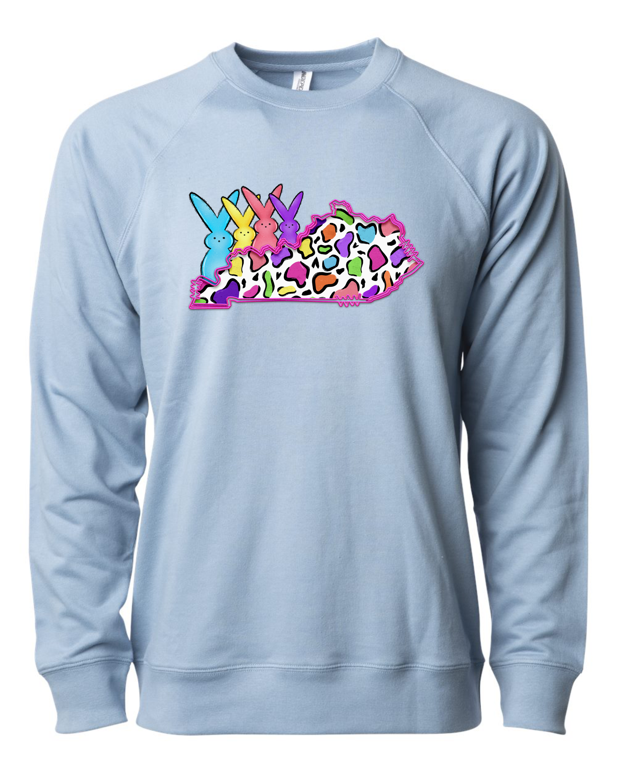 This ultra-soft, lightweight loopback terry crewneck features the most adorable bright Kentucky bunnies you'll find anywhere! Available in unisex adult sizes for everyone to enjoy.