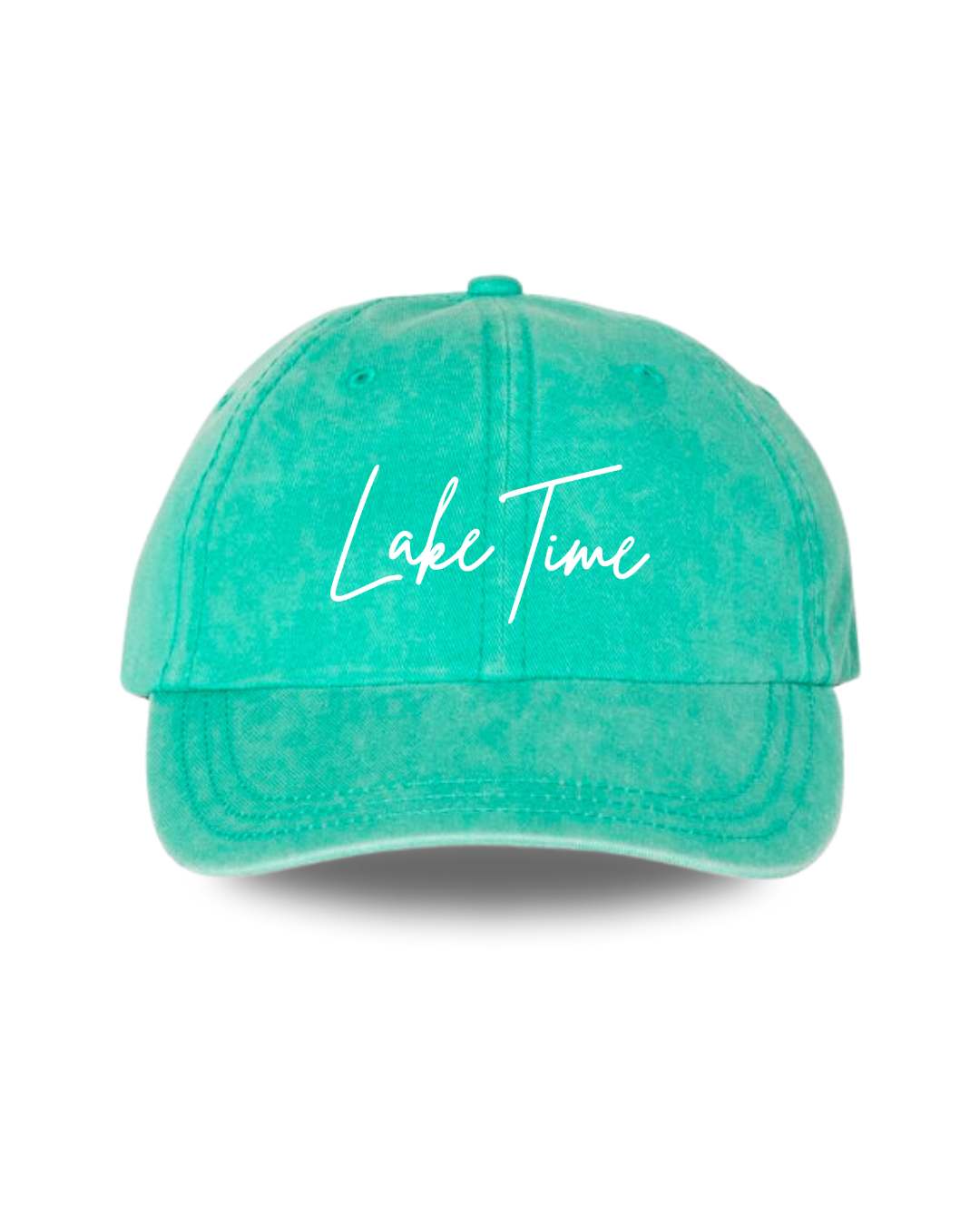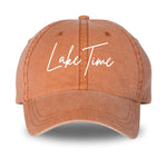 Show off your love for the lake with our Lake Time Signature Hat. Crafted from 100% cotton and pigment dyed for that perfect worn-in vibe, this classic "dad hat" sports embroidered lettering up front and an adjustable metal buckle at the back. It’s the ultimate fun and stylish companion for every lakeside escape.