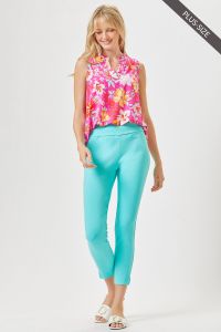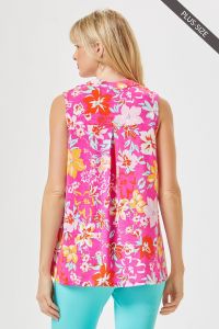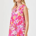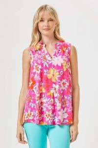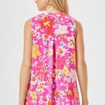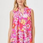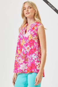 Introducing the fabulous Lizzy Pink Floral Sleeveless Top, perfect for any occasion! With an effortless wrinkle-free design, this top features a mandarin collar and vee neckline for a stylish touch. Say goodbye to ironing and hello to easy style!