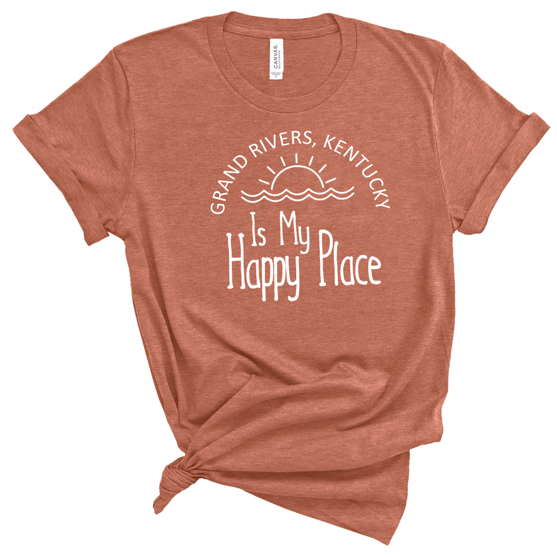 Grand rivers is the western ky destination for everyone's happy place! soft bella canvas tee in adult unisex sizes.
