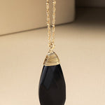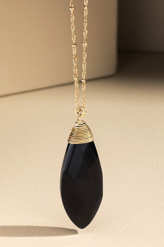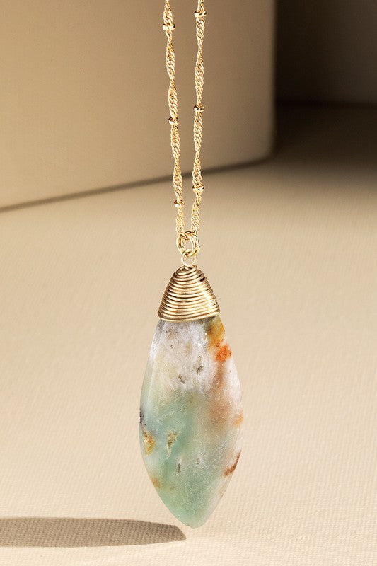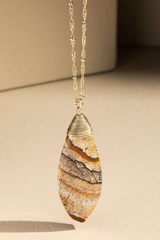 This Natural Stone Long Pendant Necklace features elegant 2.25-inch oval stones on a 31.5-inch brass chain with a secure lobster clasp. Its refined design adds a timeless and sophisticated touch to any outfit.