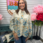Open Weave Patchwork Button Down Top