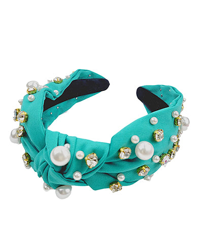 Adorned with sparkling crystals, shimmering pearls, and dazzling jewels, this knotted headband is a sparkling treasure!