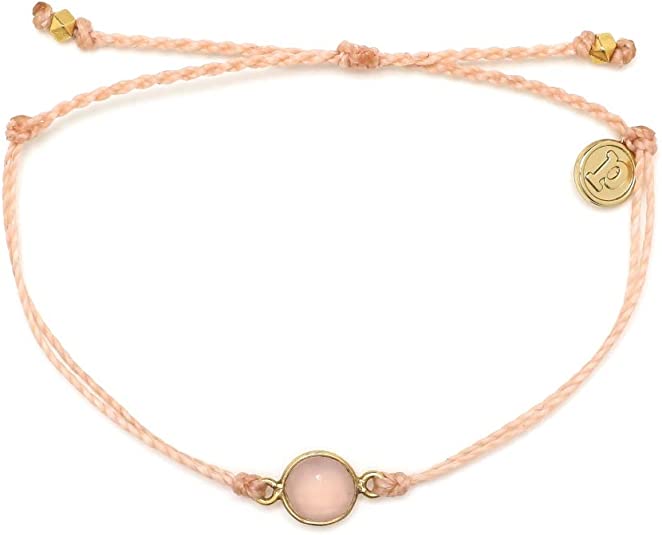 This Pura Vida adjustable bracelet features a charming rose gold quartz stone, wrapped in a playful woven design perfect for any occasion.