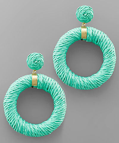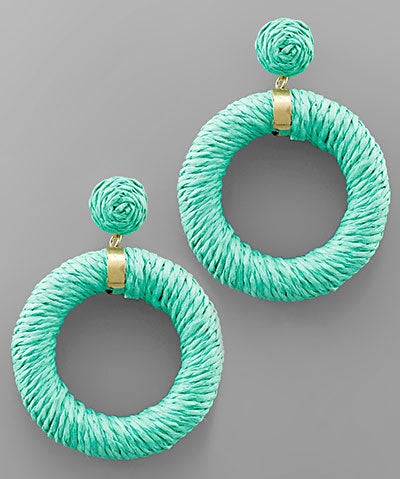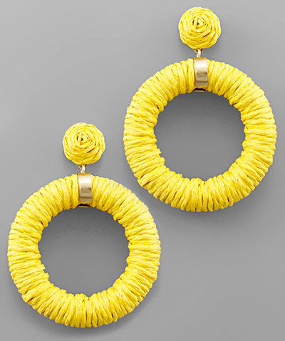 Brighten your summer look with these colorful Raffia Circle Dangle Earrings!