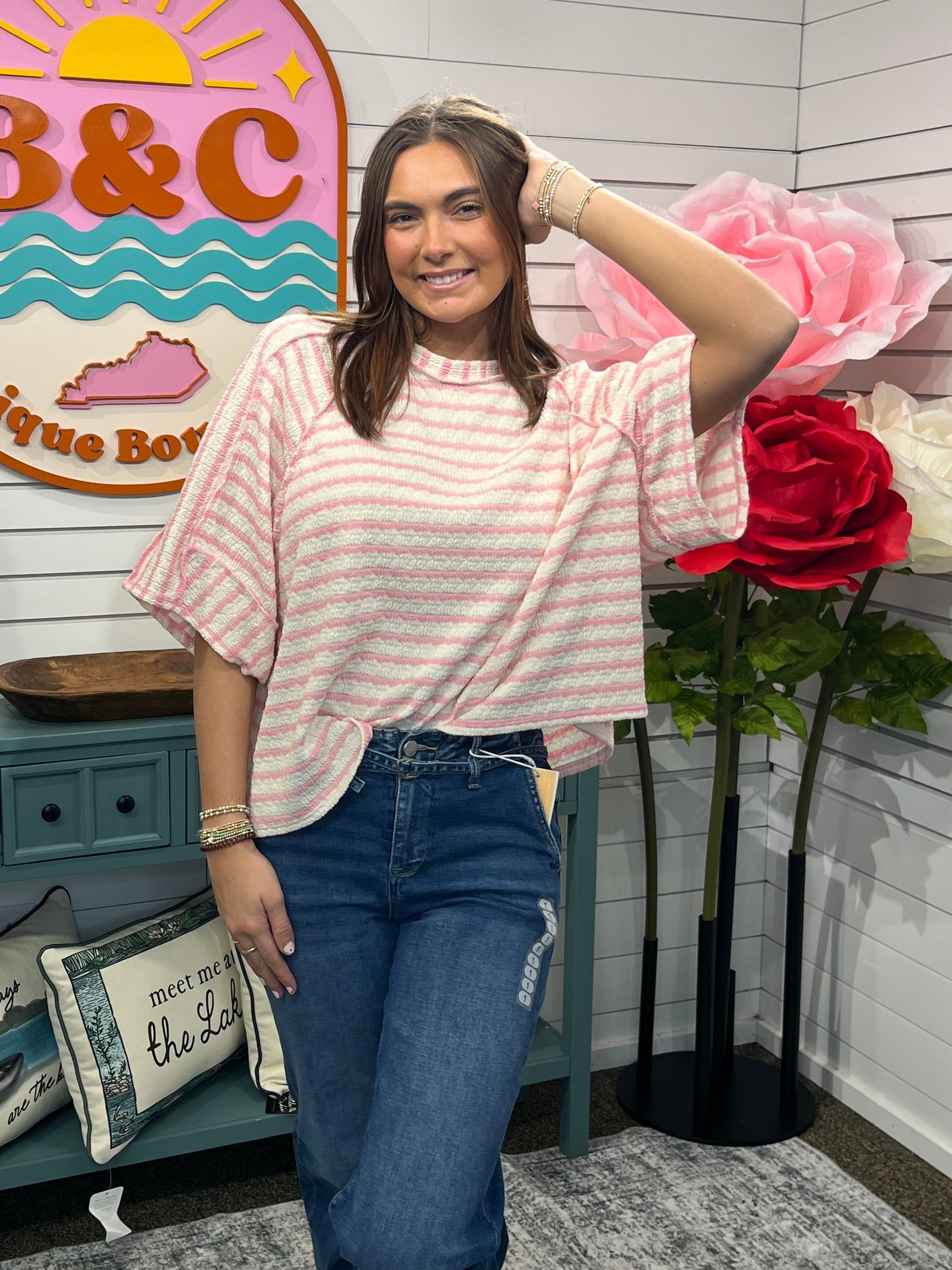 Raglan Sleeve Oversized Textured Stripe Top