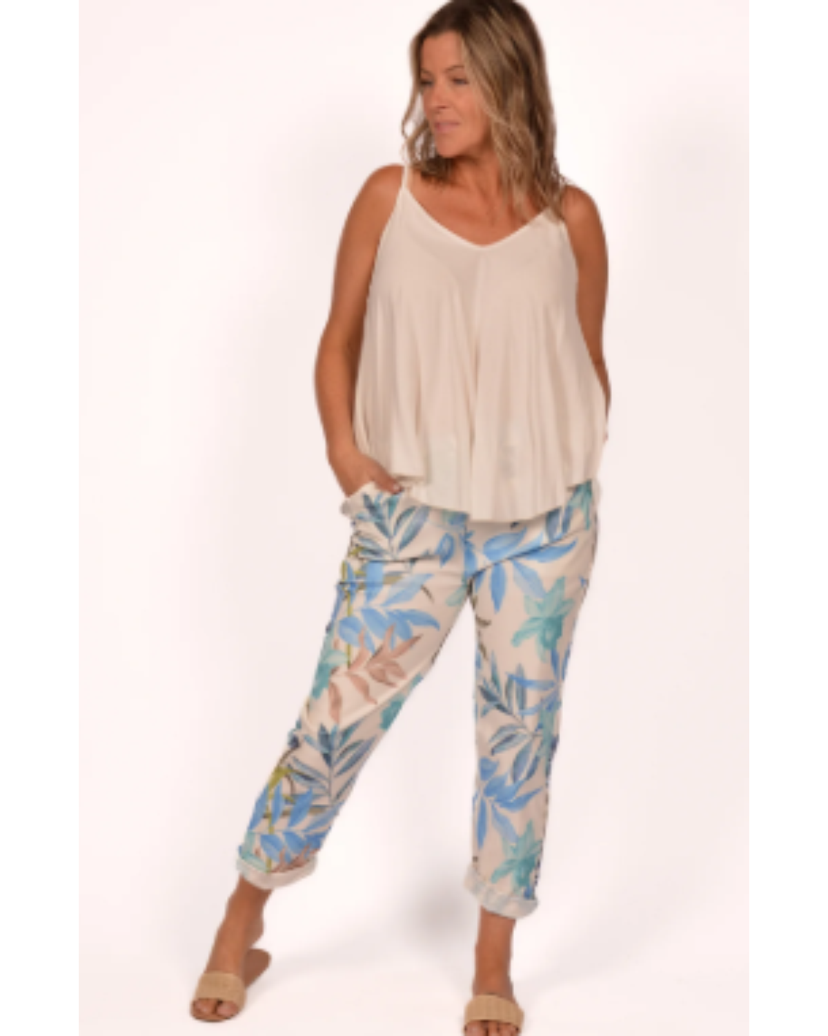The serena spaghetti tank: a cool, comfortable addition to any wardrobe. its flowing drape pairs perfectly with our floral printed cropped pants, making it a stylish and versatile choice. say goodbye to boring tanks and hello to effortless chic.