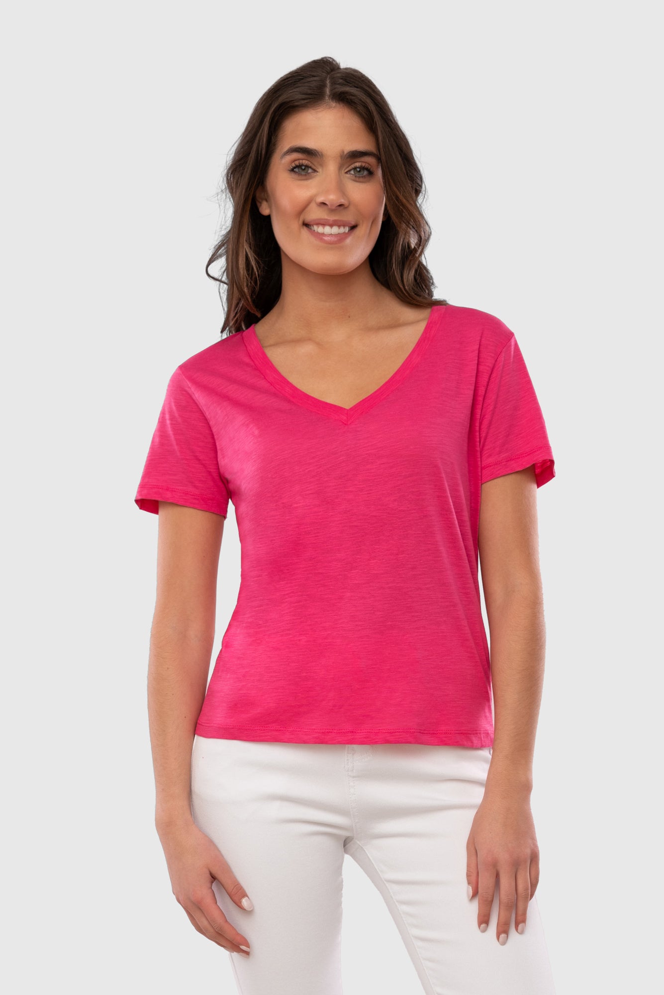 Stay cool and comfortable in our Slub V-Neck Tee. Made with a cotton rayon mix, this lightweight short-sleeve tee comes in a variety of vibrant colors. Perfect for any casual occasion and guaranteed to keep you feeling light and breezy. Grab one (or two) today!