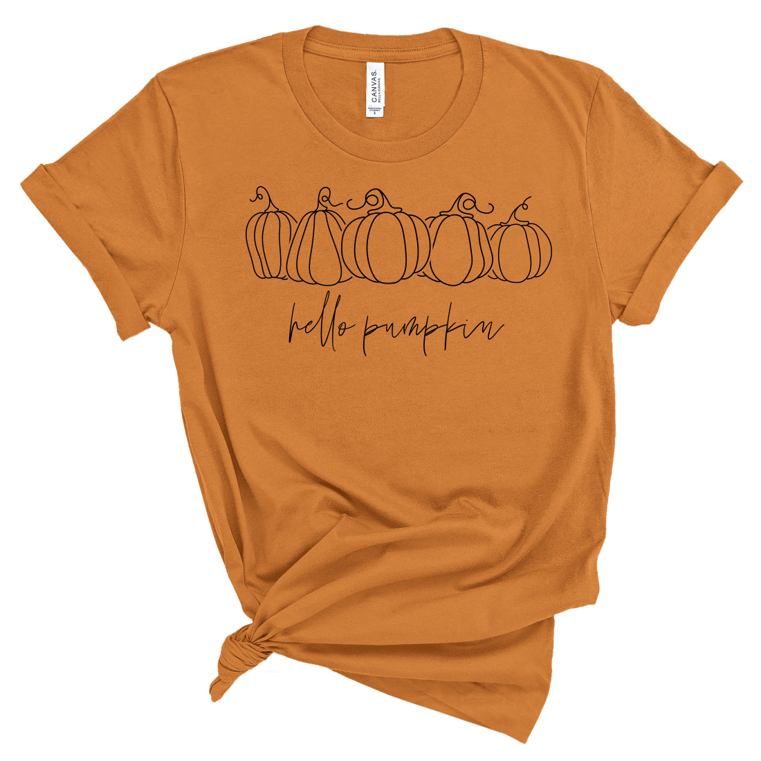 This cozy Bella Canvas short sleeve tee features cheerful pumpkins and clean, charming lines—ideal for layering under your favorite sweaters and cardigans!