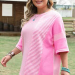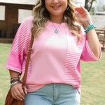 Waffle Knit Stripe Patchwork 3/4 Sleeve