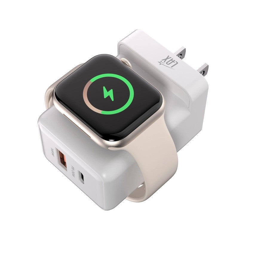 Power up your entire tech lineup without the cable clutter! This sleek 3-in-1 wall charger keeps your phone, tablet, and Apple Watch juiced up simultaneously—because waiting for devices to charge one at a time is so last season. High-speed charging means less time tethered to outlets and more time doing what you love. Compact, efficient, and ready to handle your whole ecosystem in one go.