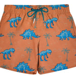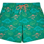 Unleash prehistoric fun with our Youth Dinosaur Swim Trunks! Watch as dinosaurs stomp across the fabric, perfect for any young boy's swim day.