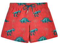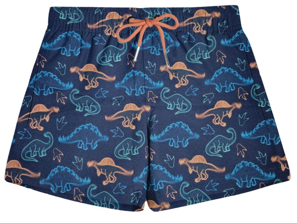 Unleash prehistoric fun with our Youth Dinosaur Swim Trunks! Watch as dinosaurs stomp across the fabric, perfect for any young boy's swim day.